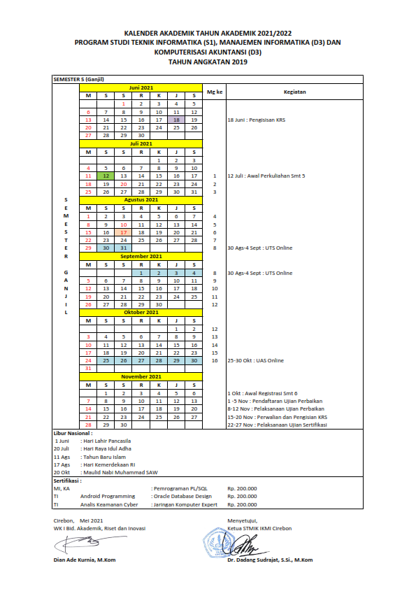 - Angkatan 2019 Semester 5 dan 6 Tahun akademik 2021 – 2022 Ganjil dan Genap